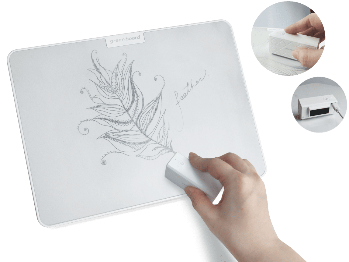 Green Board 15吋磁性手寫板,搭配專用電動板擦,獨創的電生磁設計裝置,輕鬆擦拭,清潔無痕,給您更好的書寫體驗。