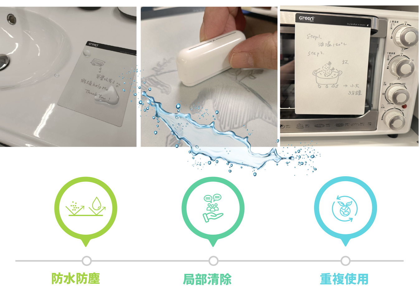 不需要額外添購墨水、粉筆等耗材,可不斷地重複使用,不浪費紙張。永久免耗材,每書寫一次就是減碳行動,節省時間與金錢,環保愛地球。